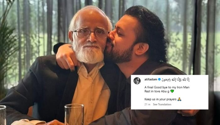 عاطف اسلم نے سماجی رابطے کے پلیٹ فارم پر اپنے والد کے ساتھ تصویر شیئر کرتے ہوئے ان کے انتقال کی اطلاع دی۔