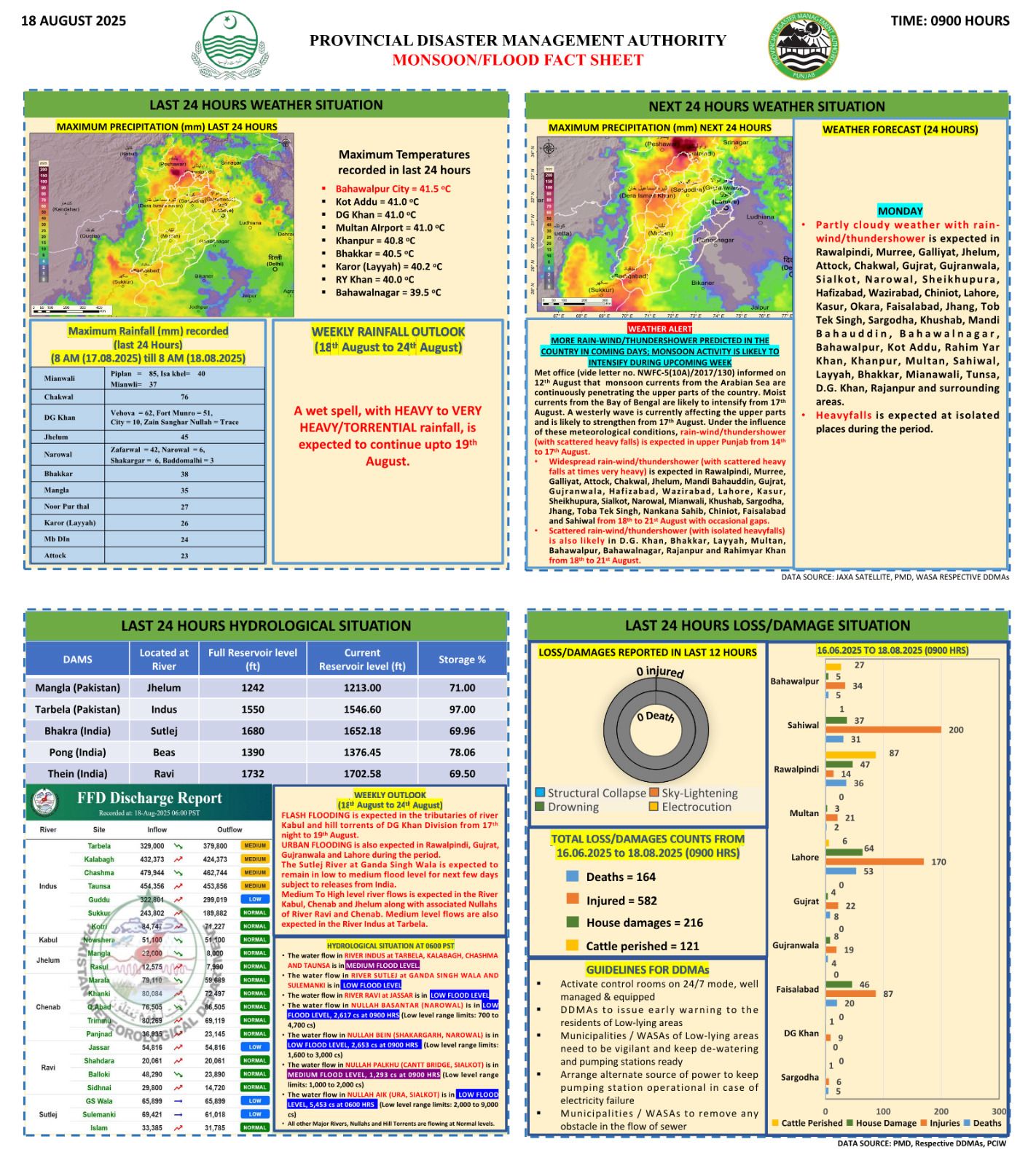 وزیر اعلیٰ پنجاب کی ہدایات کے پیشِ نظر پی ڈی ایم اے پنجاب کی مون سون فلڈ کی صورتحال بارے فیکٹ شیٹ جاری کردی۔