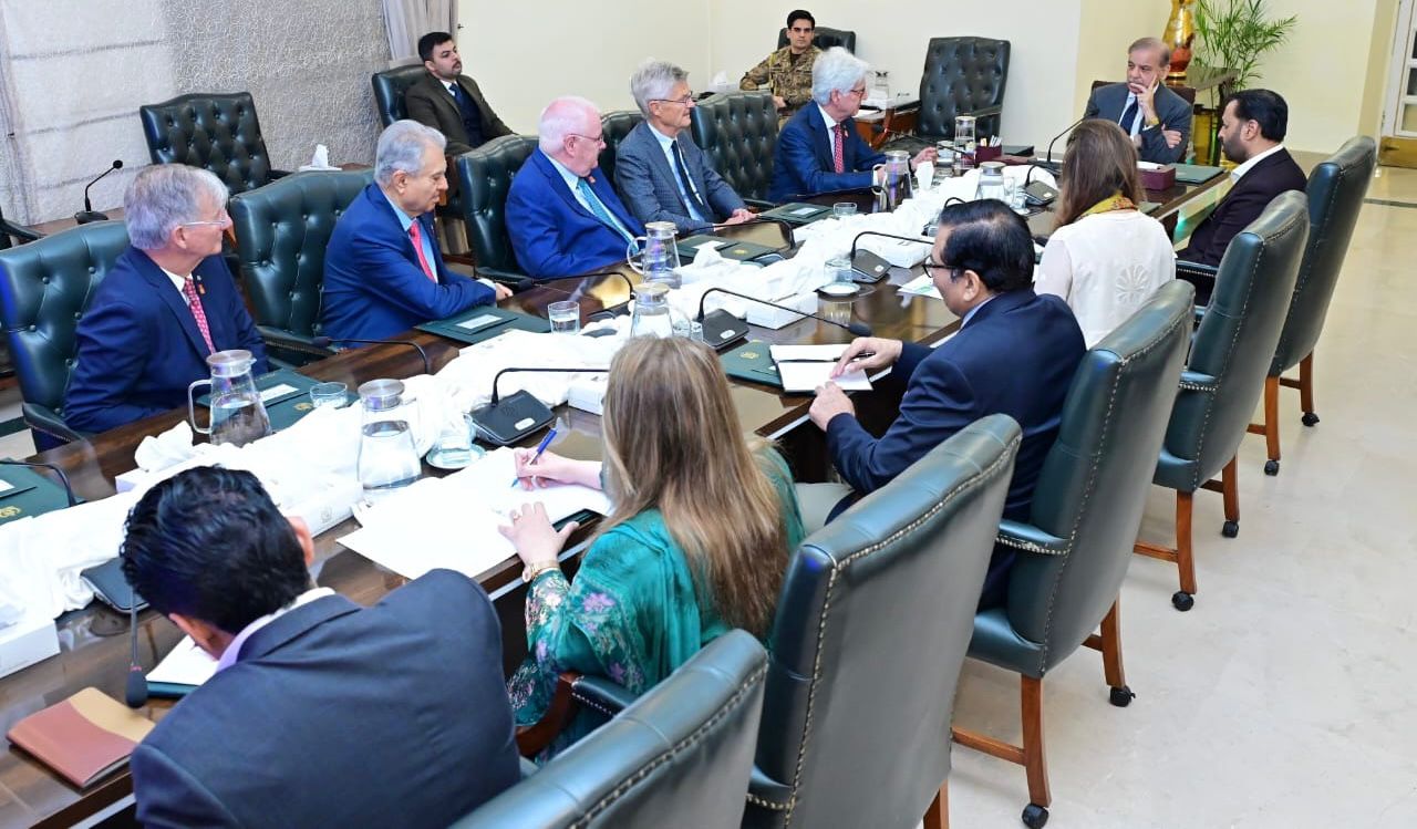 وزیرِ اعظم محمد شہباز شریف سے روٹری انٹرنیشنل فاؤنڈیشن کے صدر فرانسیسکو اریزو (Francesco Arezzo) کی وفد کے ہمراہ ملاقات کی