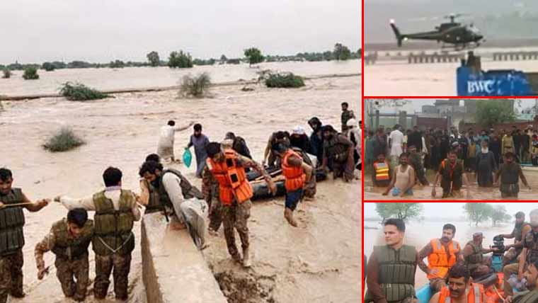 پاک فوج کے جوانوں نے سرگودھا کے علاقے گورنہ پٹھاناں سمیت دیگر علاقوں میں سیلاب میں گھرے افراد کو کشتیوں کے ذریعے محفوظ مقامات پر منتقل کیا۔