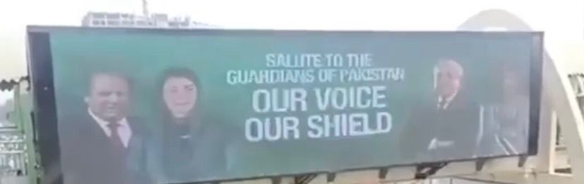ان الیکٹرانک بورڈز پر پاکستان مسلم لیگ (ن) کے قائد محمد نواز شریف، وزیراعظم شہباز شریف اور فیلڈ مارشل سید عاصم منیر کی تصاویر آویزاں ہیں، جبکہ سعودی ولی عہد شہزادہ محمد بن سلمان اور وزیراعظم شہباز شریف کی تصویر بھی نمایاں کی گئی ہے۔