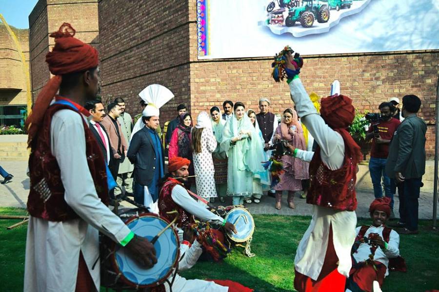 تقریب میں پیلے اور سرخ پنجابی لاچے کرتے میں ملبوس ڈھولچیوں نے فن کا مظاہرہ کیا۔ رنگا رنگ روایتی ملبوسات پہنے فنکاروں نے روایتی رقص پیش کیا ۔