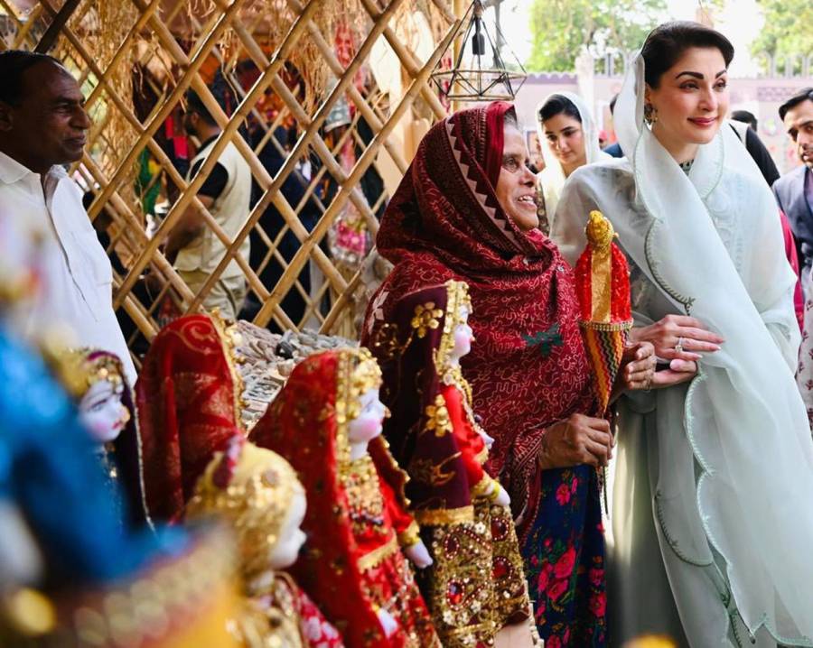 وزیراعلی مریم نے چوڑیوں ، کھگو گھوڑے ، کھسے۔ بلاک پرنٹ ،مکیش اور گوٹا کناری ملبوسات میں دلچسپی کا اظہار کیا۔