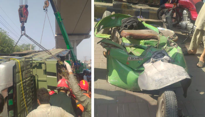 ریسکیو حکام کے مطابق افسوسناک واقعہ لاہور کے علاقے باغبان پورہ کے جی ٹی روڈ پر پیش آیا جس دوران ڈمپر نے 3 رکشوں اور 2 موٹرسائیکلوں کو ٹکر ماردی۔
