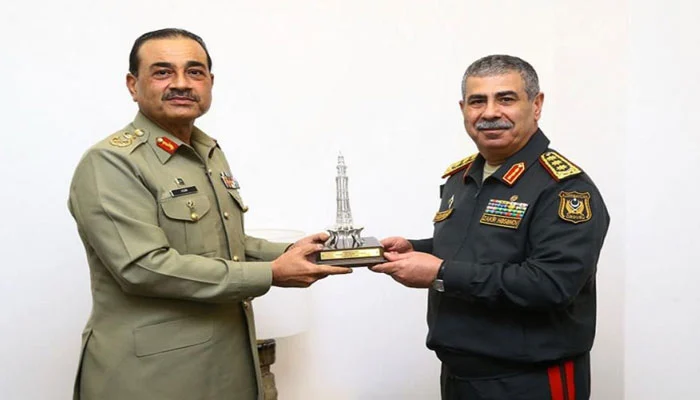 آرمی چیف فیلڈ مارشل سید عاصم منیر نے دونوں ممالک کے درمیان مضبوط دوطرفہ تعلقات کو سراہا اور آذربائیجان کے ساتھ دفاعی تعلقات کو مضبوط کرنے کے لیے پاکستان کے عزم پر بھی زور دیا۔