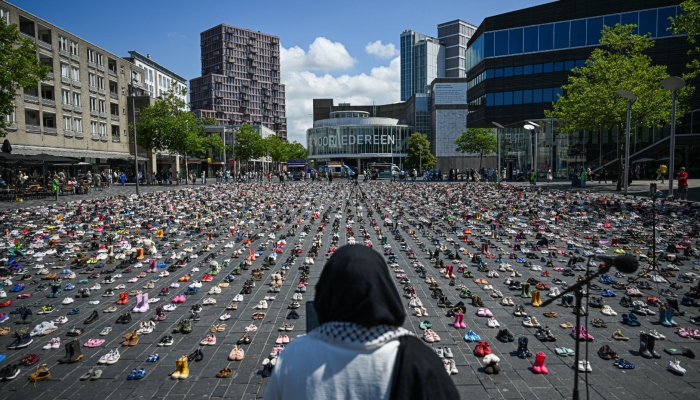 اسرائیلی مظالم کے خلاف اور غزہ کے شہید بچوں کی یاد میں نیدرلینڈز میں ہزاروں جوتے رکھ کر منفرد احتجاج ریکارڈ کروایا گیا۔