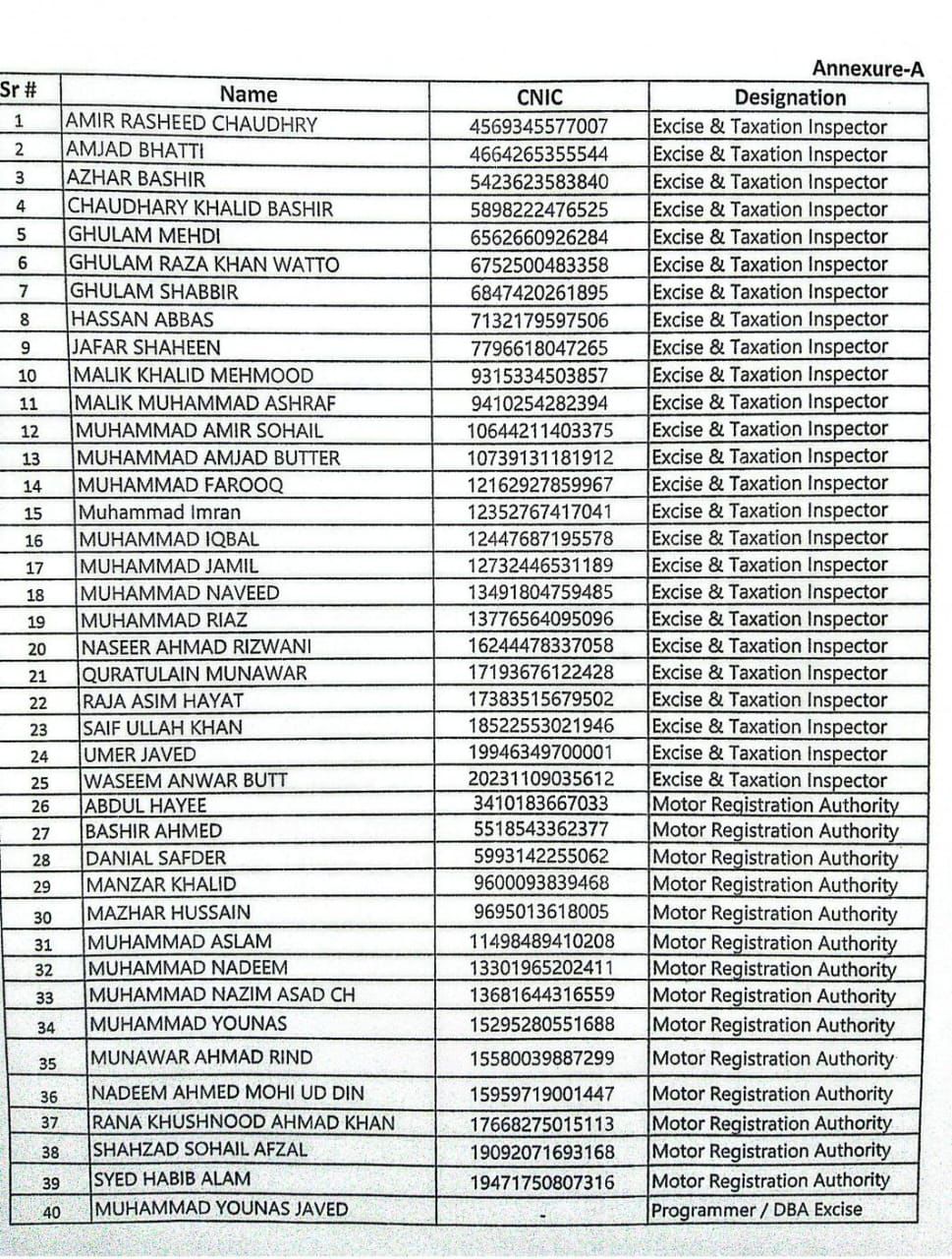 نیب لاہور نے ایکسائز ڈیپارٹمنٹ کو ہدایت دی ہے کہ: