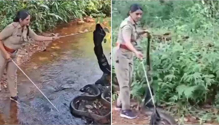 صفحہ اول بھارتبھارت: خاتون فاریسٹ افسر نے 18 فٹ لمبےکنگ کوبرا کو باآسانی پکڑکر سب کو حیران کردیا