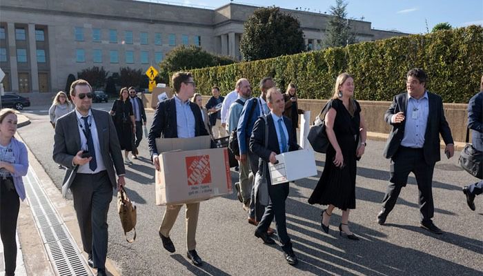 واشنگٹن: امریکا میں 30 سے زائد بڑے نیوز اداروں نے پینٹاگون کی نئی میڈیا پالیسی پر دستخط سے انکار کر دیا ہے۔ اس انکار کے بعد درجنوں صحافیوں نے محکمہ دفاع (ڈیفنس ڈپارٹمنٹ) میں اپنے دفاتر خالی کر دیے ہیں، جب کہ پینٹاگون کا پریس ایریا سنسان ہو گیا ہے۔