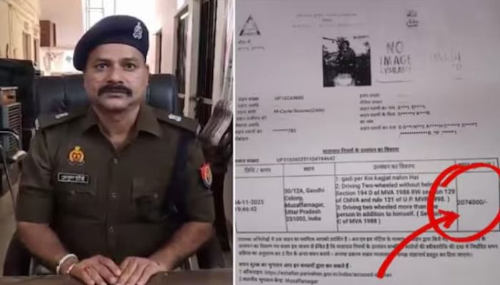 بھارتی ریاست اتر پردیش کے مظفر نگر میں ایک شہری کو ہیلمٹ نہ پہننے اور ڈرائیونگ لائسنس نہ رکھنے پر 20 لاکھ 74 ہزار بھارتی روپے (تقریباً 60 لاکھ پاکستانی روپے) کا چالان تھما دیا گیا، جو بعد میں ٹائپنگ کی غلطی ثابت ہوا۔
