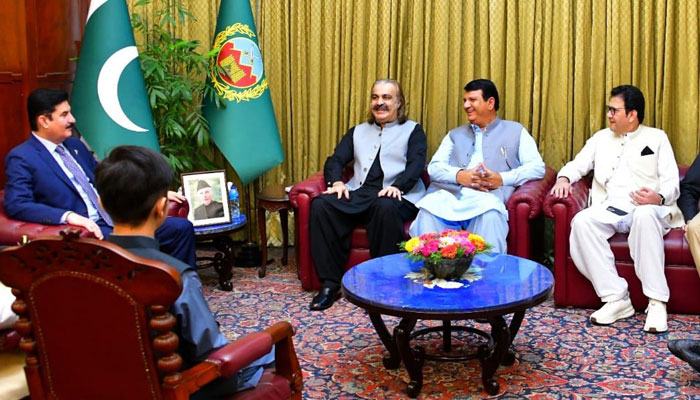 صفحہ اول پاکستانگورنر، وزیراعلیٰ کے پی کی خوشگوار ماحول میں ملاقات، امیر مقام کے مزاح پر محفل کشت زعفران بن گئی