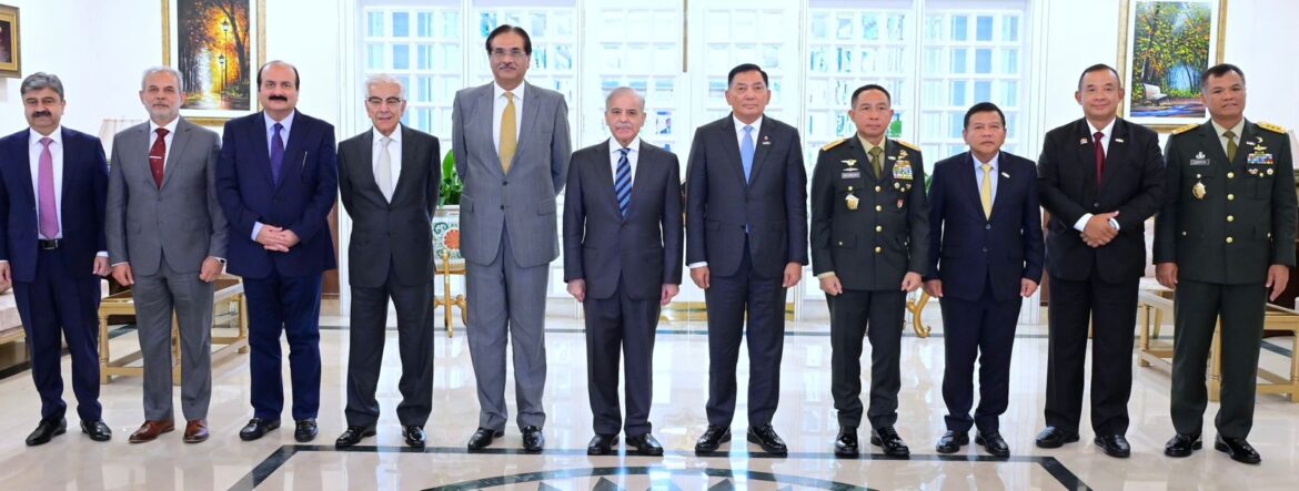 وزیراعظم محمد شہبازشریف سے انڈونیشیا کے وزیر دفاع لیفٹیننٹ جنرل (ر) سیافری سمسودین (Syafrie Samsudin) نے ملاقات کی۔