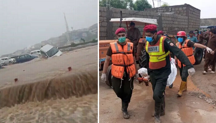 دوسری جانب سینیٹر شیری رحمان کی زیرصدارت سینیٹ کی قائمہ کمیٹی برائے ماحولیاتی تبدیلی کا اجلاس ہوا، جس میں چیئرمین شیری رحمان نے کہا کہ ندی نالوں پر تعمیرات کی گئیں جس کے نتیجے میں نقصانات اٹھانا پڑے، راولپنڈی کی نجی ہاؤسنگ سوسائٹی میں ریلے میں بہہ جانے والے باپ بیٹی کی تلاش جاری ہے، یہ قدرتی آفات نہیں،کلائمیٹ چینج ہےجس میں بدقسمتی سے پاکستان کا پہلا نمبر ہے۔