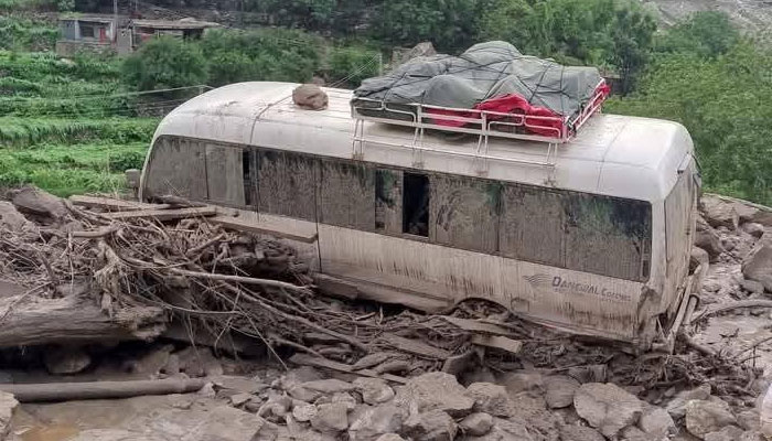 سیلاب کے باعث خاتون اور بچے سمیت 6 افراد جاں بحق اور متعدد زخمی ہوئے، درجنوں گاڑیوں اور 8 کلو میٹر طویل سڑک بھی مکمل طور پر تباہ ہو گئی۔
