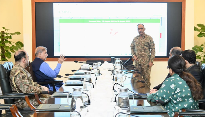 وزیرِ اعظم شہباز شریف کی زیر صدارت ملک میں حالیہ بارشوں اور سیلاب کی صورتحال کے جائزے کے لیے ہنگامی اجلاس ہوا۔