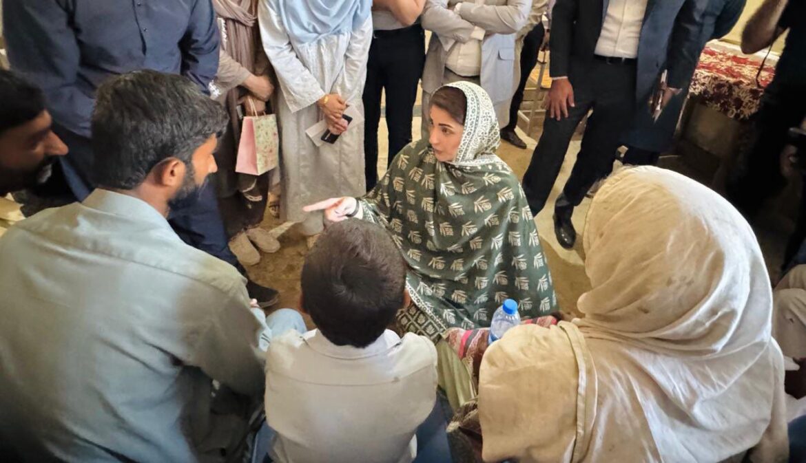وزیر اعلیٰ مریم نواز شریف نے سیلاب کے دوران جاں بحق افراد کے اہل خانہ سے ملاقات کی ۔وزیراعلیٰ مریم نواز کو غمزدہ ماں نے روتے ہوئے بتایا کہ ”میرا بیٹا کزن کو بچاتے ہوئے ڈوب گیا“۔وزیر اعلیٰ مریم نواز شریف نے روتی ہوئی،سسکیاں لیتی بزرگ خاتون کوتسلی دی۔وزیراعلیٰ مریم نوازشریف نے سیلاب میں پورے خاندان کو کھو دینے والے بچے کو پیار کیا، سر پر ہاتھ پھیرکر شفقت کا اظہار کےا ۔وزیراعلیٰ مریم نوازشریف یتیم بچے کے سامنے دوزانو بیٹھ گئیں اور محبت سے گال سہلاتی رہیں ۔وزیراعلیٰ مریم نوازشریف نے چچا کو یتیم بچے کا خیال رکھنے کی خصوصی تلقین کی۔ وزیراعلیٰ مریم نوازشریف نے جاں بحق ہونے والے افراد کے ورثاءکو امدادی رقوم کے چیک بھی پیش کیے۔وزیر اعلیٰ مریم نواز شریف نے کہاکہ مرنے والے کے نقصان کا ازالہ نہیں کرسکتے مگرآپ کے دکھ میں پوری طرح شریک ہیں۔وزیراعلیٰ مریم نوازشریف نے سیلاب متاثرہ بچوں کے لئے قائم عارضی کلاس روم کا بھی دورہ کیا ۔وزیراعلیٰ مریم نوازشریف کوبچوں نے سٹیکر،ویلکم کارڈ اورہاتھ سے بنائے پورٹل پیش کیے۔وزیراعلیٰ مریم نوازشریف نے معصوم بچوں کے تحائف دیکھ کرمسرت کا اظہار کیا ۔وزیراعلیٰ مریم نوازشریف نے بچوں کو سویٹس،تحائف پیش کیے،دل لگا کر پڑھنے کی تلقین کی ۔وزیراعلیٰ مریم نوازشریف نے فلڈر یلیف کیمپ کے ٹینٹ سٹی میں مقیم متاثرہ خاندانوں سے بھی فرداً فرداً ملاقات کی۔وزیراعلیٰ مریم نوازشریف نے مرد،خواتین اوربچوں کو تحائف اورپھل پیش کیے۔وزیراعلیٰ مریم نوازشریف نے متاثرہ خاندانوں کو دلاسہ دےااورنقصان پورا کرنے کی یقین دہانی کرائی۔بزرگ خاتون نے وزیراعلیٰ مریم نوازشریف سے اظہار تشکرکرتے ہوئے کہا کہ”چاول،بھاجی،ہر چیز ڈھی دی پئی اے“۔وزیراعلیٰ مریم نوازشریف کو دیکھ کر فلڈ ریلیف کیمپ اورہیلی پیڈ کے گرد ہزاروں کا مجمع امڈ آیا۔عوام نے وزیراعلیٰ مریم نوازشریف کی آمد پر پرجوش نعرے لگائے اورخوشی کا اظہارکےا ۔وزیراعلیٰ مریم نوازشریف نے سرائیکی میں گفتگوکرتے ہوئے کہا کہ”فکر نہ کرو،سب ٹھیک تھی وے سی“ ۔”اللہ خیر کرسی،نقصان پوراکر ساں”۔وزےراعلیٰ مریم نوازشریف نے کہا کہ پانی اتر جائے گاتوتخمینہ لگاکر نقصان پورا کریں گے۔ سیلاب متاثرین نے مجھے ماں،بیٹی اوربہن کہا ہے،خیال رکھنا میرا فرض ہے۔ سیلاب متاثرین کاجو بھی نقصان ہوا پورا کریں گے۔سیلاب سے جن کاگھر گر گیا ان کو گھر بنا کردیں گے۔انہوںنے کہاکہ سیلاب میں جن کے جانور بہہ گئے ان کا بھی ازالہ کریں گے۔ سیلاب متاثرین تسلی رکھیں اکیلا نہیں چھوڑیں گے۔وزیر اعلیٰ مریم نواز شریف کو ڈی سی اور ڈی جی پی ڈی ایم اے نے بریفنگ دی۔