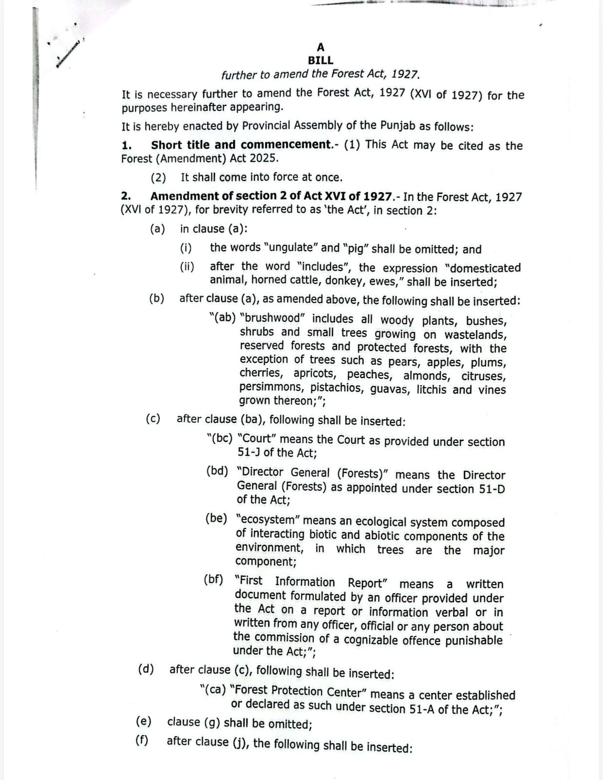 لاہور: حکومت پنجاب نے صوبے میں جنگلات کے تحفظ اور غیر قانونی کٹائی کی روک تھام کے لیے فاریسٹ ایکٹ 1927 میں اہم ترامیم تجویز کرتے ہوئے فاریسٹ ترمیمی ایکٹ 2025 پنجاب اسمبلی میں پیش کر دیا ہے۔ مجوزہ ترامیم کے تحت ٹمبر مافیا، غیر قانونی شکار اور جنگلات کو نقصان پہنچانے والوں کے لیے بھاری جرمانے اور سخت سزائیں متعارف کروانے کی سفارش کی گئی ہے۔