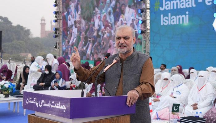لاہور: امیر جماعت اسلامی حافظ نعیم الرحمان نے کہا ہے کہ ملک کا موجودہ نظام انصاف پر مبنی نہیں اور خواتین کو بے شمار سماجی، معاشی اور قانونی چیلنجز کا سامنا ہے۔ لاہور میں جماعت اسلامی کے اجتماعِ عام کے دوسرے روز خواتین کے سیشن سے خطاب کرتے ہوئے انہوں نے کہا کہ ملک میں تین کروڑ بچے اسکولوں سے باہر ہیں، جو موجودہ نظام کی ناکامی کا واضح ثبوت ہے۔