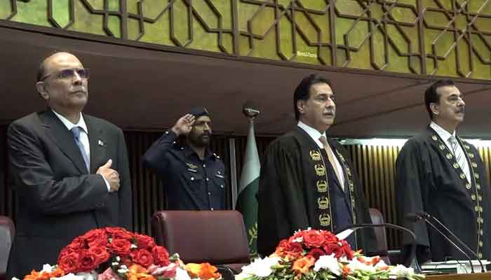 وزیراعظم شہباز شریف ایوان آمد پر صدر مملکت آصف علی زرداری کا استقبال کریں گے۔ صدر مملکت اپنے خطاب سے قبل اسپیکر چیمبر میں وزیراعظم سے ملاقات کریں گے۔