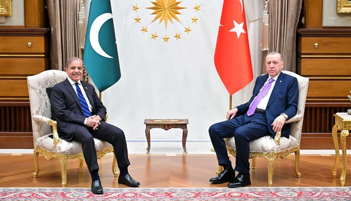 اعلامیے کے مطابق انقرہ میں ہونےوالی ملاقات میں وزیراعظم شہباز شریف اور ترک صدر رجب طیب اردوان نے پاکستان اور ترکیے کے درمیان برادرانہ تعلقات پر اطمینان کا اظہار کیا۔