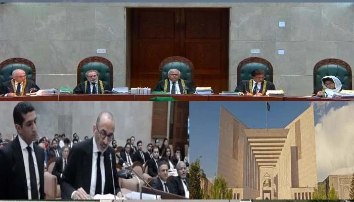 سپریم کورٹ میں جسٹس امین الدین کی سربراہی میں آئینی بینچ مخصوص نشستوں کےکیس کی سماعت کررہا ہے جو براہ راست نشر کی جارہی ہے۔