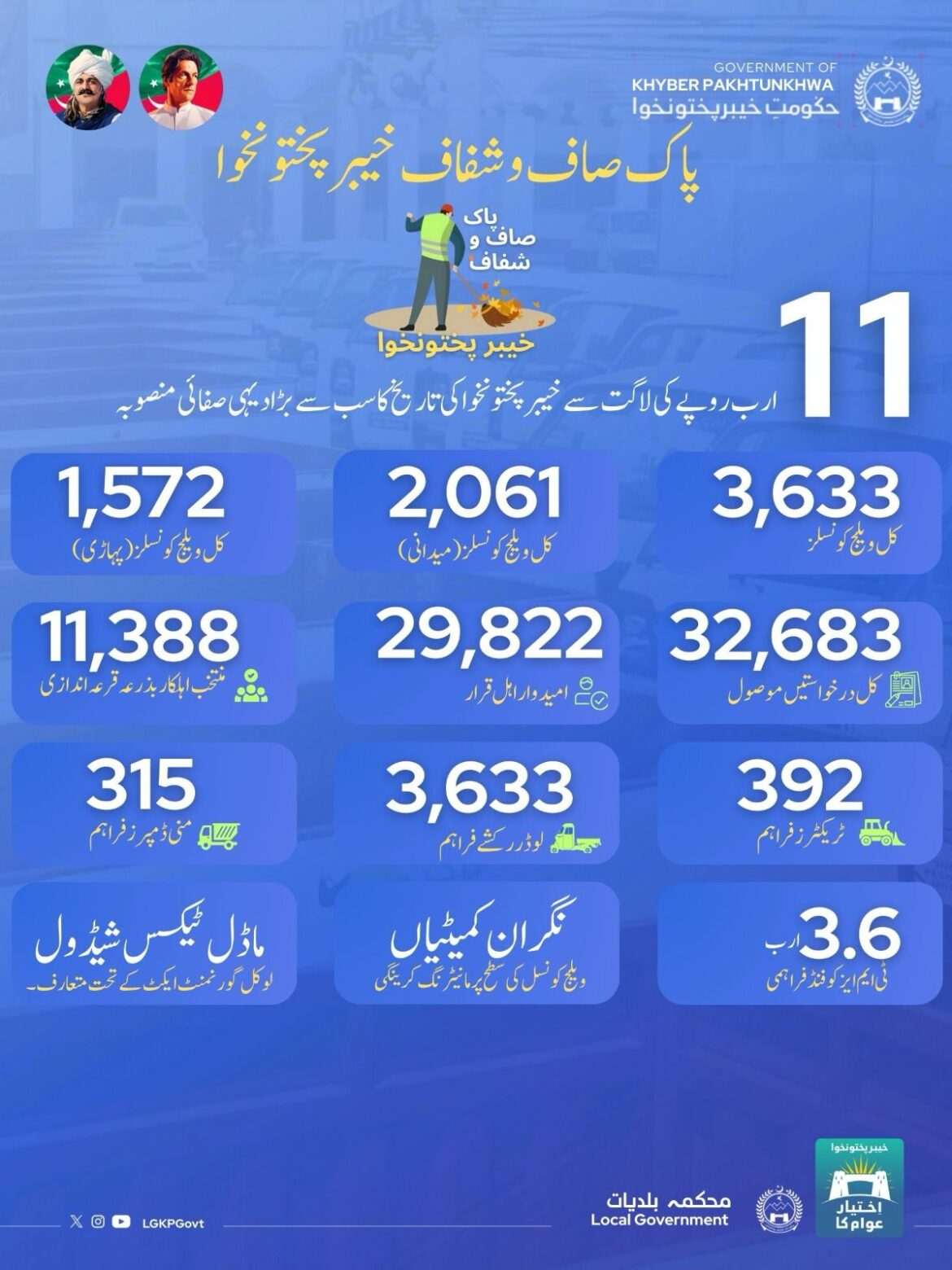 وزیر اعلیٰ خیبرپختونخوا علی امین خان گنڈاپور نے صوبے کے دیہی علاقوں میں صفائی ستھرائی کے لیے11 ارب روپے کی لاگت سے اپنی نوعیت کے پہلے اور منفرد فلیگ شپ پروگرام پاک صاف و شفاف خیبرپختونخوا کا باضابطہ اجراء کر دیا ہے۔