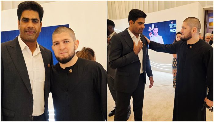 دبئی: پاکستانی اولمپک اسٹار اور جیولن تھرو کے نمایاں کھلاڑی ارشد ندیم کی عالمی سطح پر پہچان میں مسلسل اضافہ ہو رہا ہے۔ حال ہی میں ارشد ندیم کی ملاقات ایم ایم اے کے عالمی لیجنڈ اور یو ایف سی لائٹ ویٹ چیمپئن حبیب نورمحمدوف سے دبئی میں ایک ایونٹ کے دوران ہوئی۔
