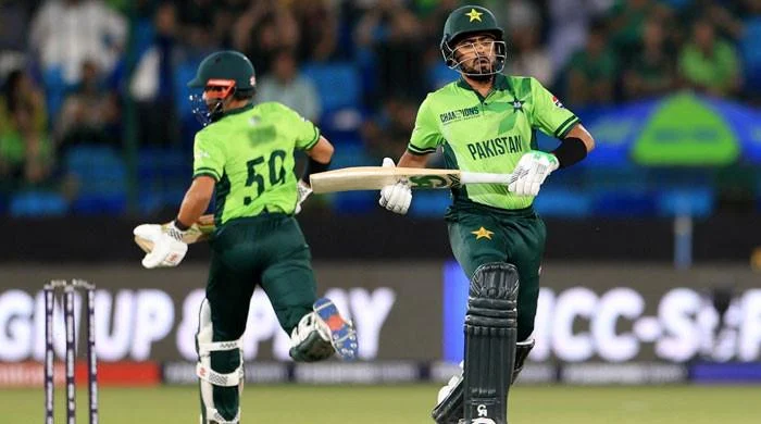 پاکستان کے پہلے آؤٹ ہونے والے بیٹر سعود شکیل تھے جو 6 رنز بنا کر آؤٹ ہوئے، 22 کے مجموعی اسکور پر کپتان رضوان بھی پویلین لوٹ گئے انہوں نے 3 رنز بنائے۔