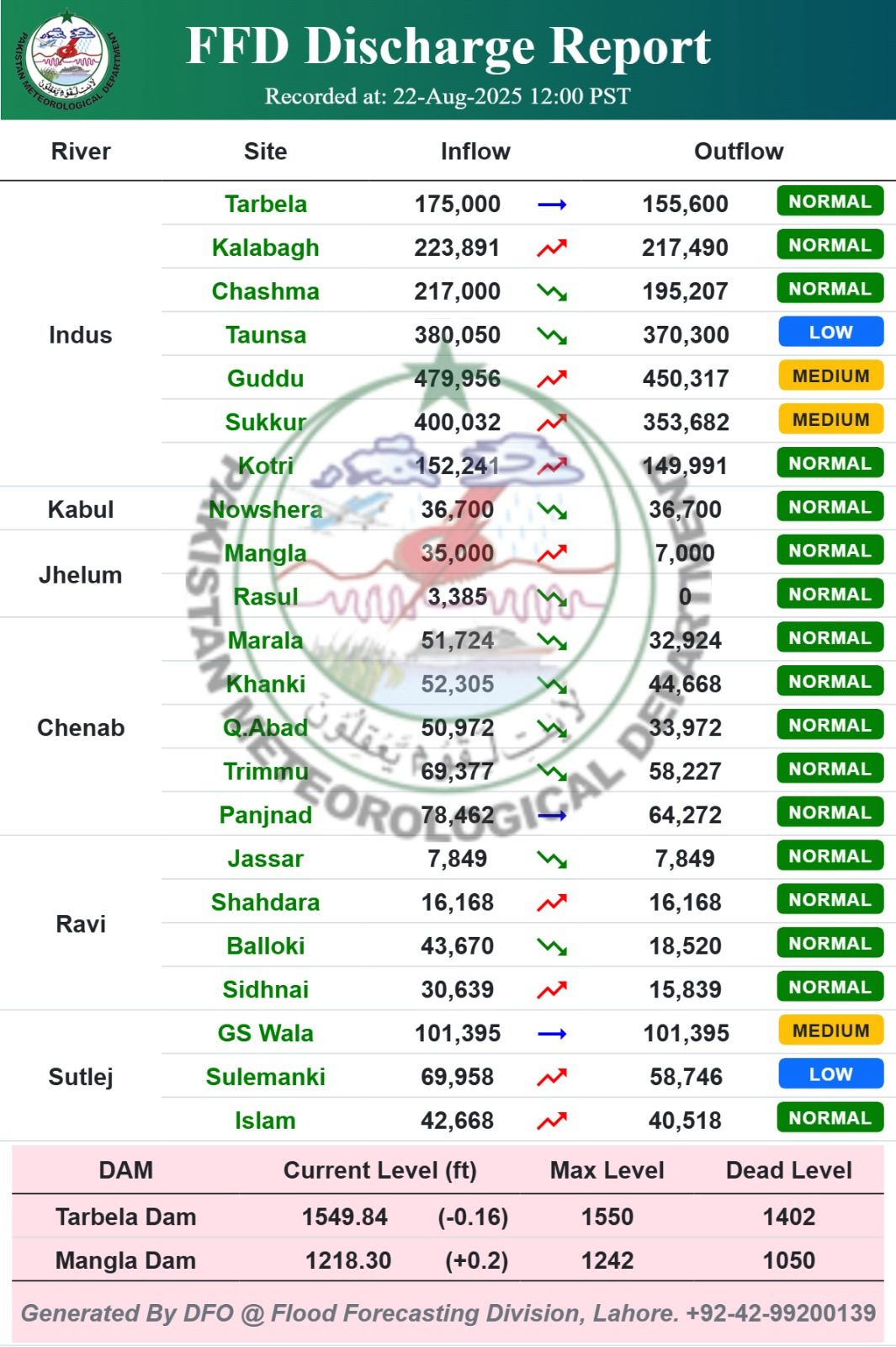 پی ڈی ایم اے پنجاب کا کہنا ہے کہ اگلے 24 گھنٹوں میں دریائے ستلج میں پانی کے بہاؤ میں اضافے کا خدشہ ہے ۔بھارتی آبی ذخائر سے پانی چھوڑے جانے کے باعث دریائے ستلج میں پانی کے بہاؤ میں اضافے کا خدشہ ہے۔23 اگست سے ملک کے بالائی علاقوں میں مون سون کے نئے اسپیل کا امکان ہے۔پی ڈی ایم اے پنجاب نے صوبہ بھر کے تمام کمشنرز و ڈپٹی کمشنرز کو الرٹ جاری کردیا ہے۔ریلیف کمشنر پنجاب نبیل جاوید کی کمشنرز، ڈپٹی کمشنرز اور ریسکیو حکام کو ممکنہ صورتحال بارے الرٹ رہنے کی ہدایات کی ہیں ڈی جی پی ڈی ایم اے نے لوکل گورنمنٹ، محکمہ زراعت، محکمہ آبپاشی، محکمہ صحت، محکمہ جنگلات، لائیو اسٹاک اور محکمہ ٹرانسپورٹ کو الرٹ جاری کر دیا گیا ہے۔ڈی جی پی ڈی ایم اے نے متعلقہ محکموں کو الرٹ رہنے کی ہدایات کی ہیں۔وزیر اعلیٰ پنجاب کی ہدایات کے پیش نظر تمام تر انتظامات پیشگی مکمل کریں۔ایمرجنسی کنٹرول رومز میں سٹاف کو الرٹ رکھا جائے۔ عوام جاری کردہ احتیاطی تدابیر پر عمل کریں۔ڈی جی پی ڈی ایم اے نے دریائے ستلج کے پاٹ میں بسے شہریوں کے فوری انخلا کی ہدایات کی ہیں۔ہنگامی انخلاء کی صورت میں انتظامیہ سے تعاون کریں ۔شہری ایمرجنسی کی صورت میں پی ڈی ایم اے کی ہیلپ لائن 1129 پر رابطہ کریں۔