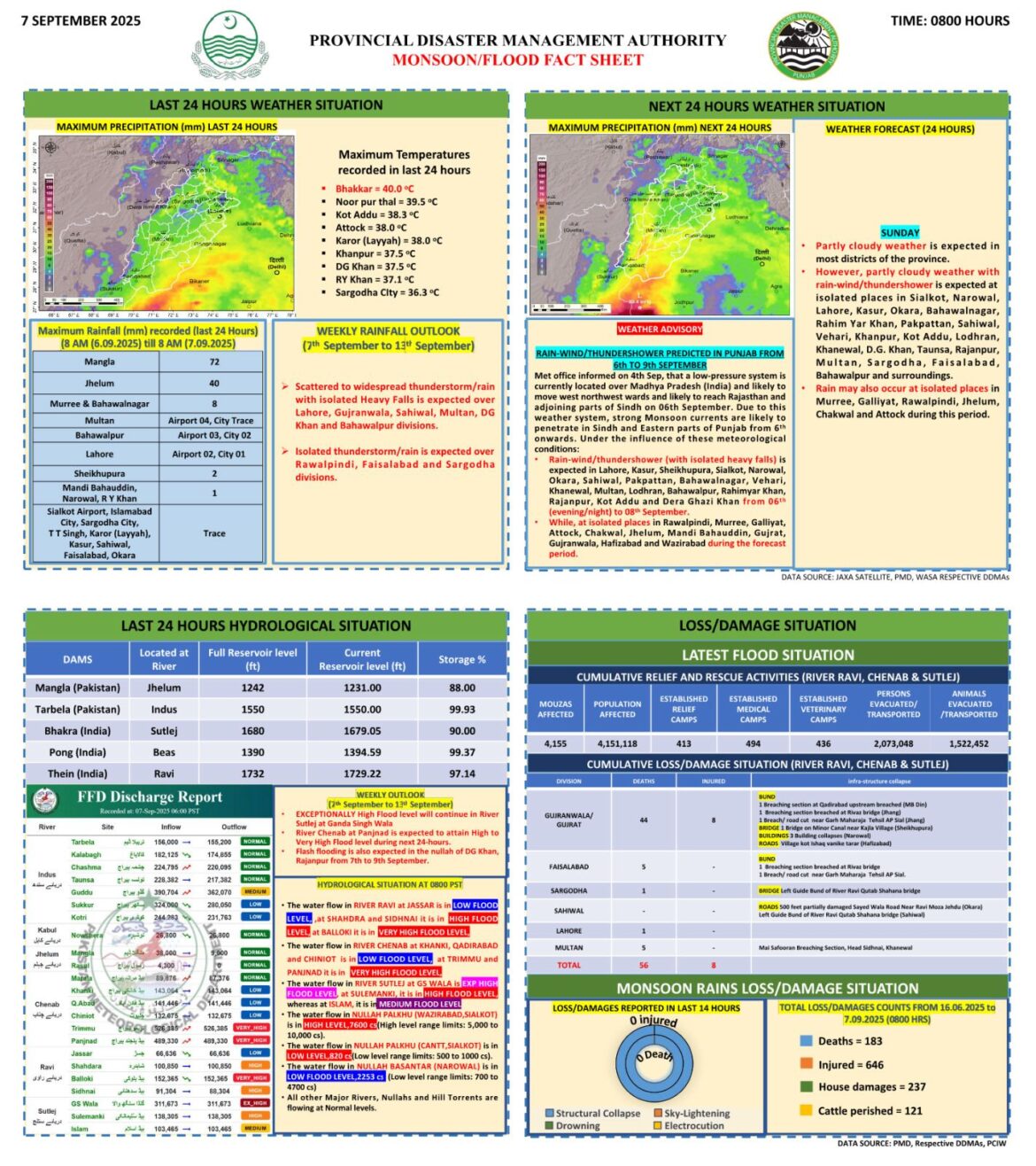 پی ڈی ایم اے پنجاب نے دریائے راوی ستلج اور چناب میں سیلاب کے باعث ہونے والے نقصانات کی رپورٹ جاری