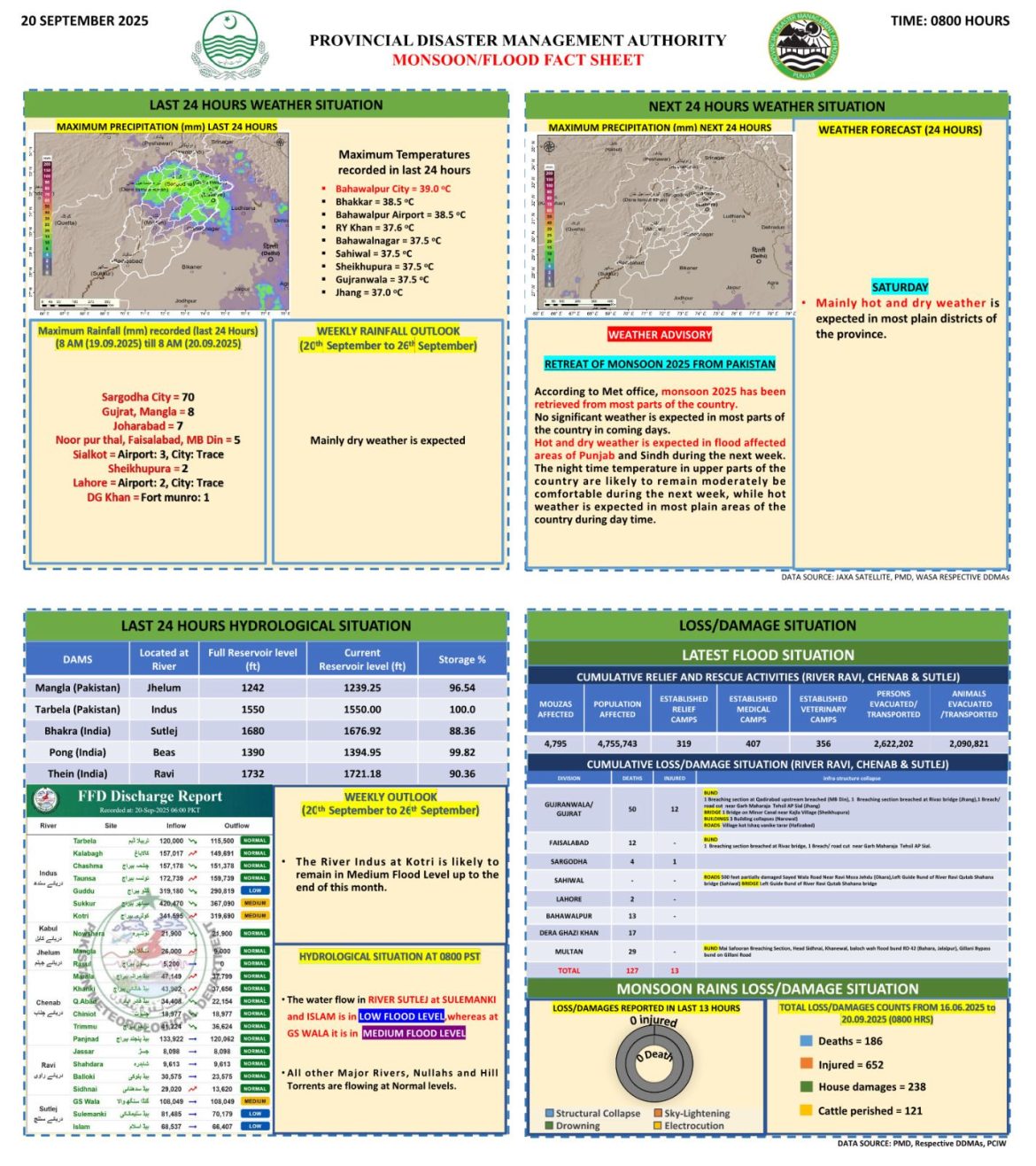 صفحہ اول موسمدریائے راوی، ستلج اور چناب میں سیلابی صورتحال؛ 47 لاکھ سے زائد افراد متاثر