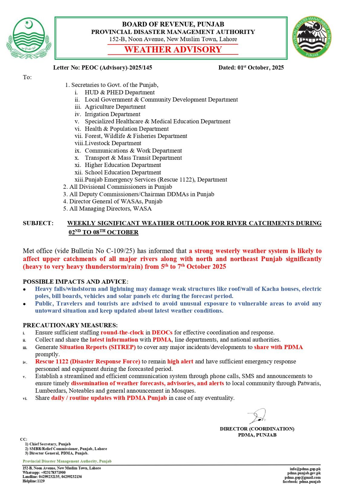 صفحہ اول موسمپنجاب میں بارشوں کا الرٹ، ضلعی انتظامیہ کو ہائی الرٹ رہنے کی ہدایت