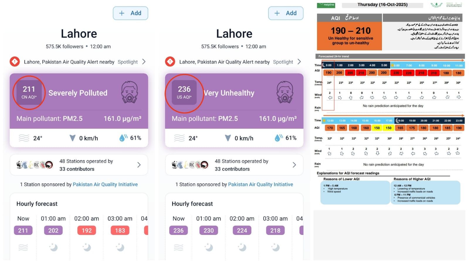 لاہور: سموگ نگرانی و پیشگوئی نظام (Smog Monitoring & Forecasting System) نے آج کی تازہ فضائی کوالٹی رپورٹ (AQI Data) جاری کر دی۔ رپورٹ کے مطابق بھارت سے آنے والی مشرقی ہواؤں اور درجہ حرارت میں کمی کے باعث لاہور کا ایئر کوالٹی انڈیکس (AQI) آج 190 سے 210 کے درمیان رہنے کا امکان ہے۔