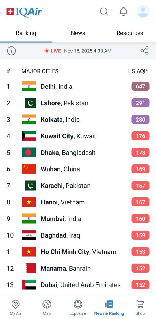 صفحہ اول موسمدہلی اور لاہور کی فضائی آلودگی میں نمایاں فرق — لاہور کا اے کیو آئی مسلسل بہتر، حکومتی اقدامات رنگ لانے لگے